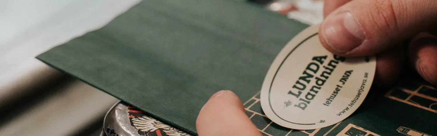 Vår Lundablandning, skapad av Jannike Skeppstedt, är inspirerad av Lunds blommiga parker och syrliga humor. Finns som svart, grönt, vitt te och rooibos.
