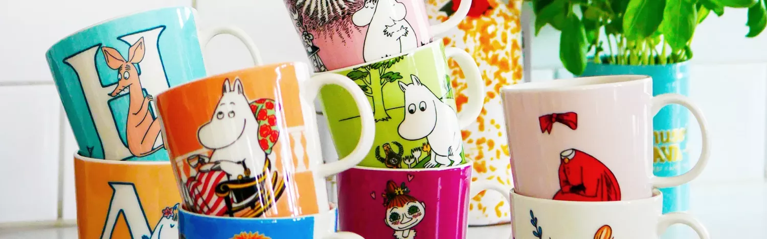 För mumintrollen är varje dag perfekt för en picknick på stranden. 2025 års sommarmugg från Arabia.