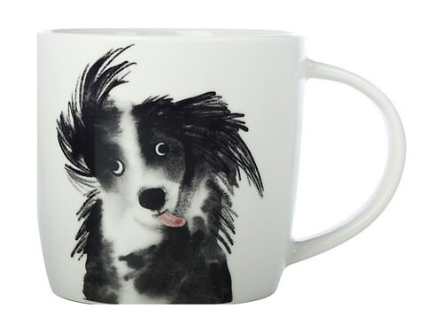 Vacker mugg i benporslin med klassiska svenska motiv målade av Sofia Kockum.