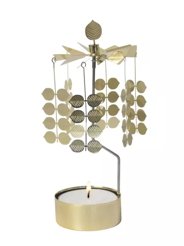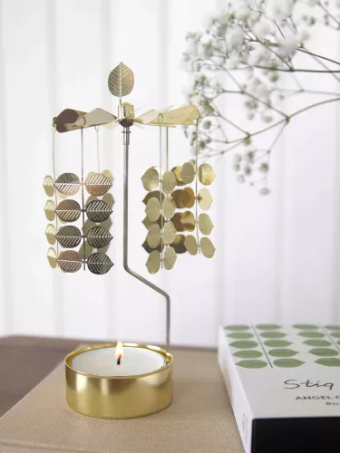 Stig Lindbergs mönster Berså har fått ta plats på ett änglaspel. Toppen snurrar med hjälp av värmen från ljuset.