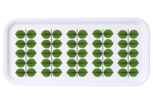 Mönstret med de gröna bladen närmast en ikon för Stig Lindberg, Gustavsberg och Folkhemssverige.