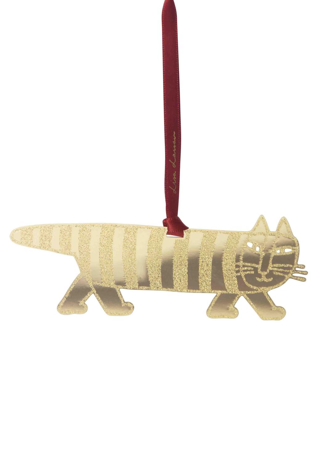 En gyllene Lisa Larson-dekoration med katten Mikey som lyser upp granen, fönstret eller presenten med charm.