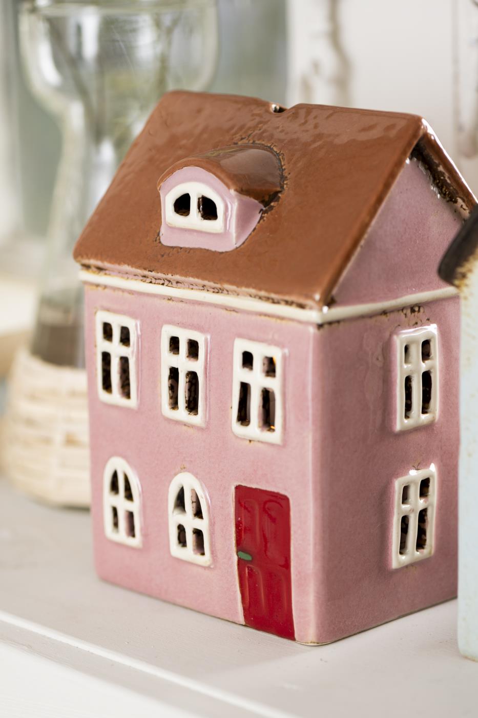 Vackert dekorativt hus i keramik som sprider ett varmt & mysigt ljus. Kombinera flera hus och skapa din egen lilla stad. Finns i flera olika modeller. Avsedd för värmeljus.