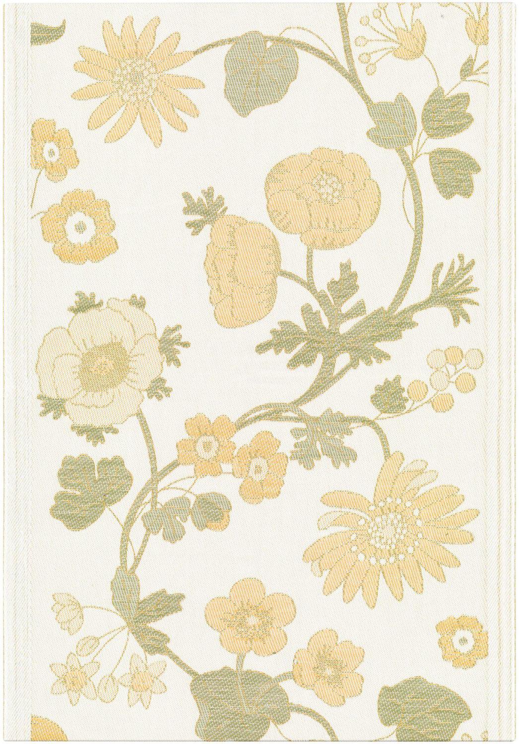 Handduk från Ekelund i gul nyans med blommor på. 100% bomull i måtten 35 x 50 cm.