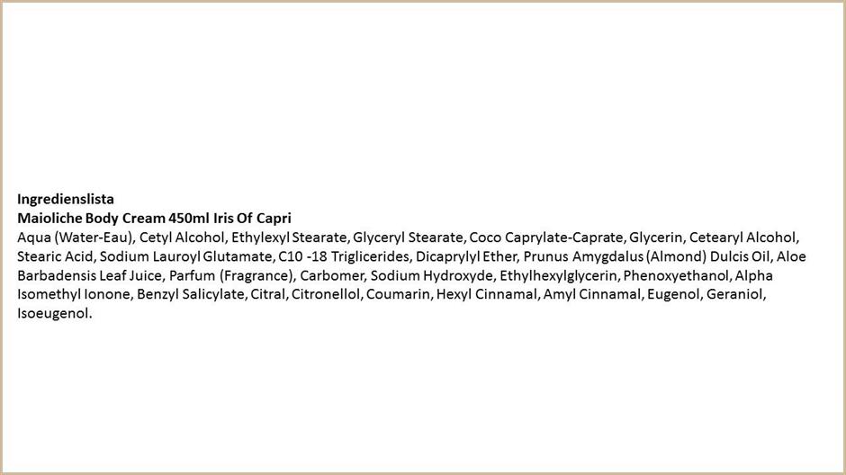 Lyxig Body Cream med en non- greasy formel gör att den lätt absorberas efter dusch och bad. Den är mjukgörande och återfuktande med ingredienser så som Aloe Vera och E–vitamin, dofter inspirerade av Italiens växter och frukter.