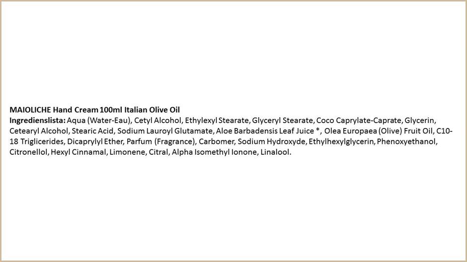 Maioliche Hand Cream Italian Olive Oil 100ml