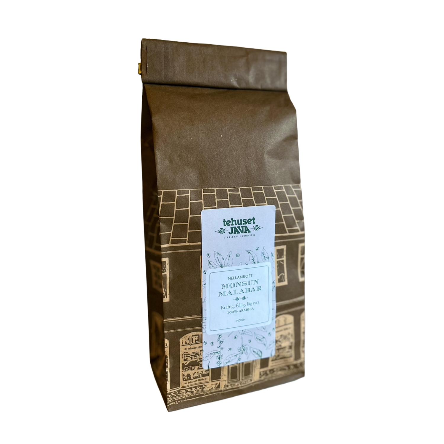 Ett i alla meningar unikt kaffe, som ger en känsla av hur kaffet smakade för 300 år sedan då det skeppades i segelbåtar av trä mellan Indien och Europa. De många och långa veckorna på havet förändrade både kaffets utseende och smak. Detta uppnår man idag genom att exponera bönorna för fuktiga och varma monsunvindar under 2-3 månader, vilket sätter sin prägel på kaffet. Bönorna blir under lagringen stora, spröda och vackert gyllengula. Smaken är kraftfull, mogen och sirapslik. Eftersmaken har karaktär av jordkällare och torvig whisky.