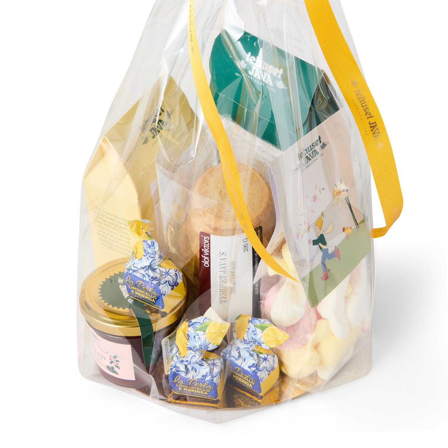 Presentpåsen försluts med Tehuset Java silkesband.