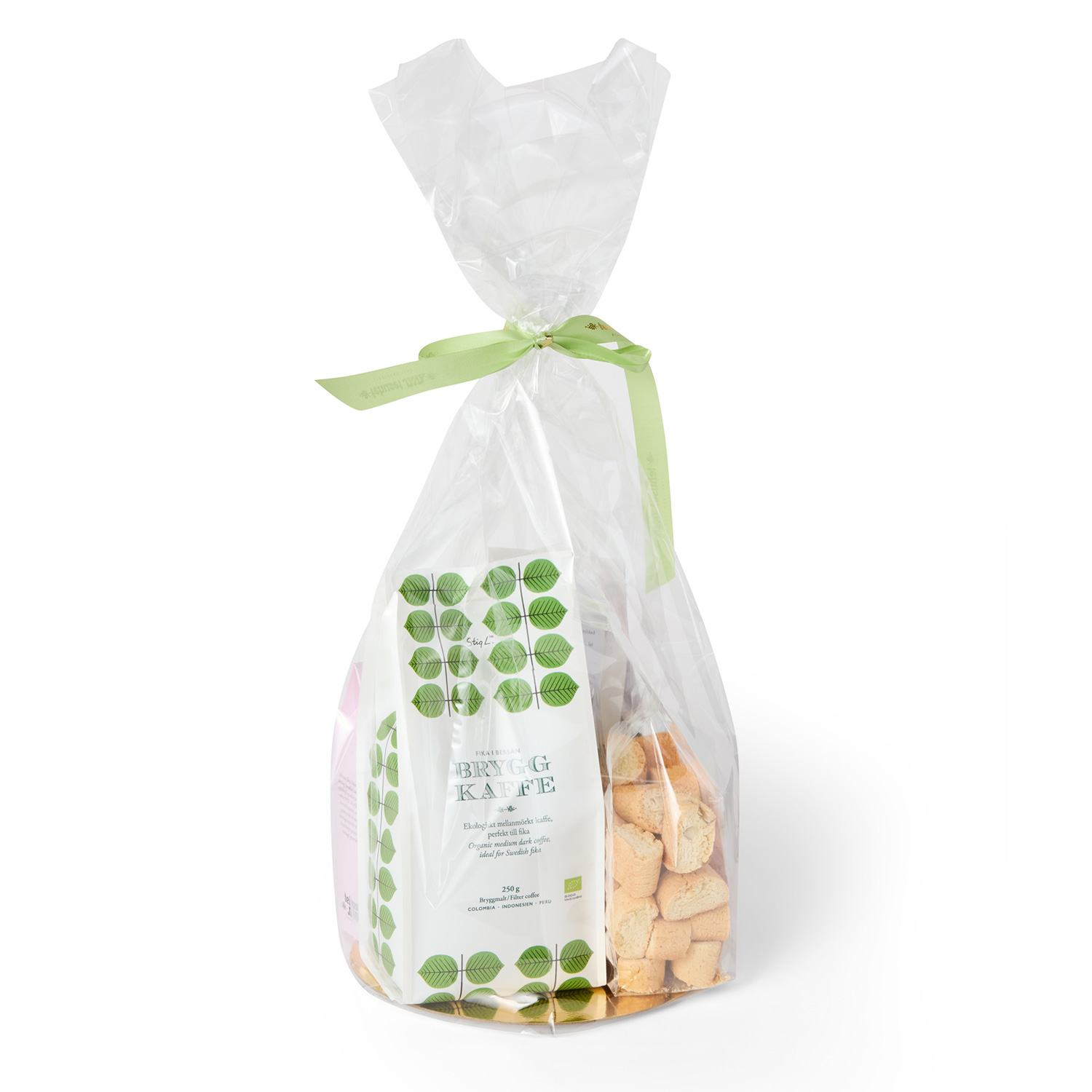 - Cellofanpåse. Genomskinlig presentpåse med band.
