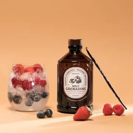 Grenadinsirap från Bacanha är en välsmakande variant av traditionell grenadin. Den har sötman av vanilj med den syrliga smaken av röda frukter.