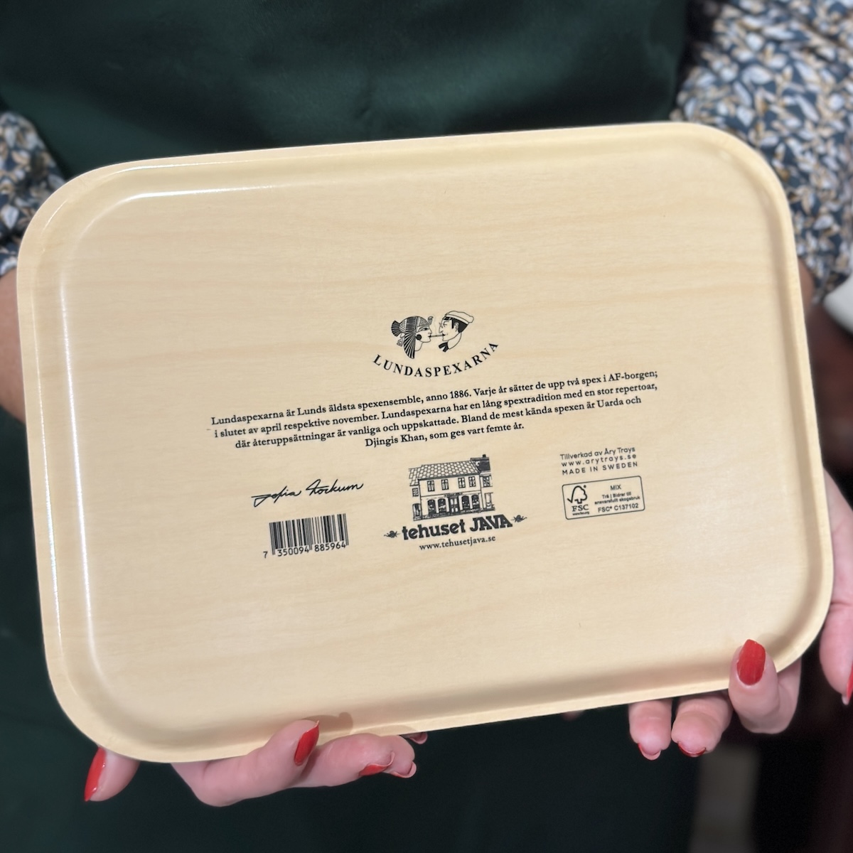Tillverkad i Sverige av FSC-märkt björkfanér för Tehuset Java och Lundaspexarna.