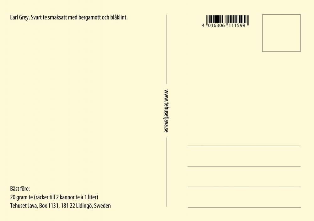 Tevykortet innehåller 20g te som räcker till ca 2 tekannor härligt te. Skicka som vanligt vykort med ett porto inom Sverige.
