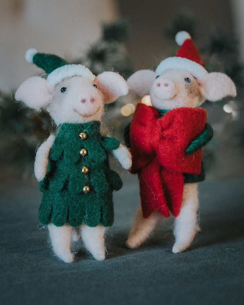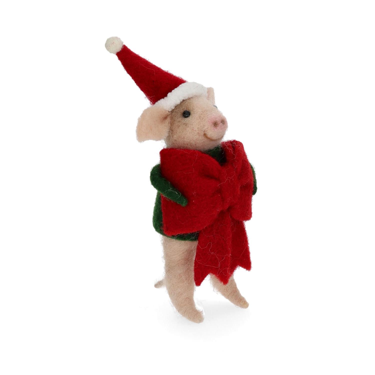 Ulldjur Julgris Röd Rosett