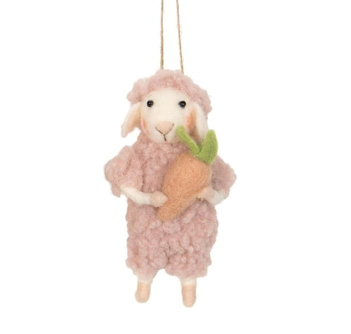 Söt rosa litet lamm i ull, perfekt att hänga i påskriset.