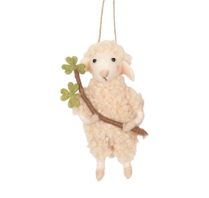 Söt vitt litet lamm i ull, perfekt att hänga i påskriset.