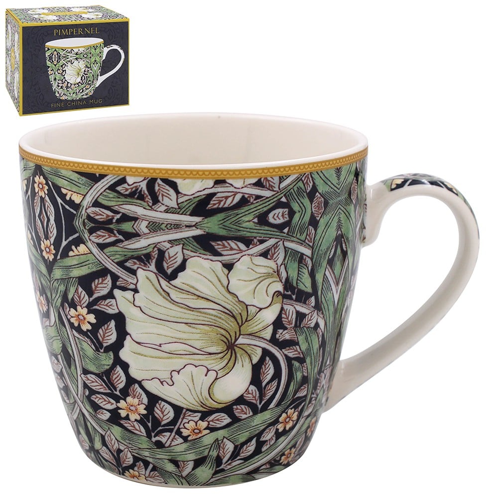 Härlig frukostmugg i svart grund med vita blommor från William Morris berömda mönster Pimpernell. Passar både till te och kaffe.